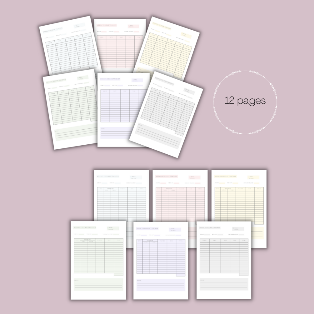 Printable Mileage Log Book: Food Grocery Delivery Driver | Side Hustle Planner | Weekly Income Expense Tracker