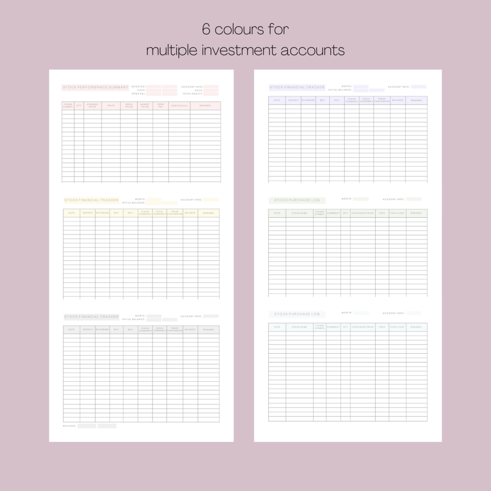 • Comes in In 6 different colours for different investment accounts (pink, blue, yellow, green, purple, grey)